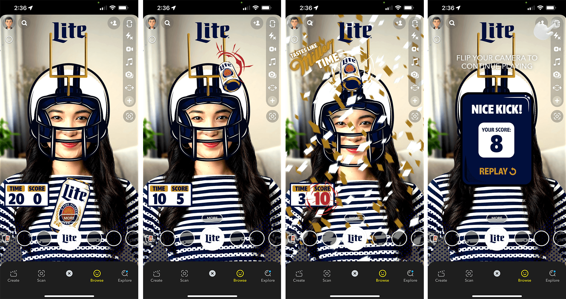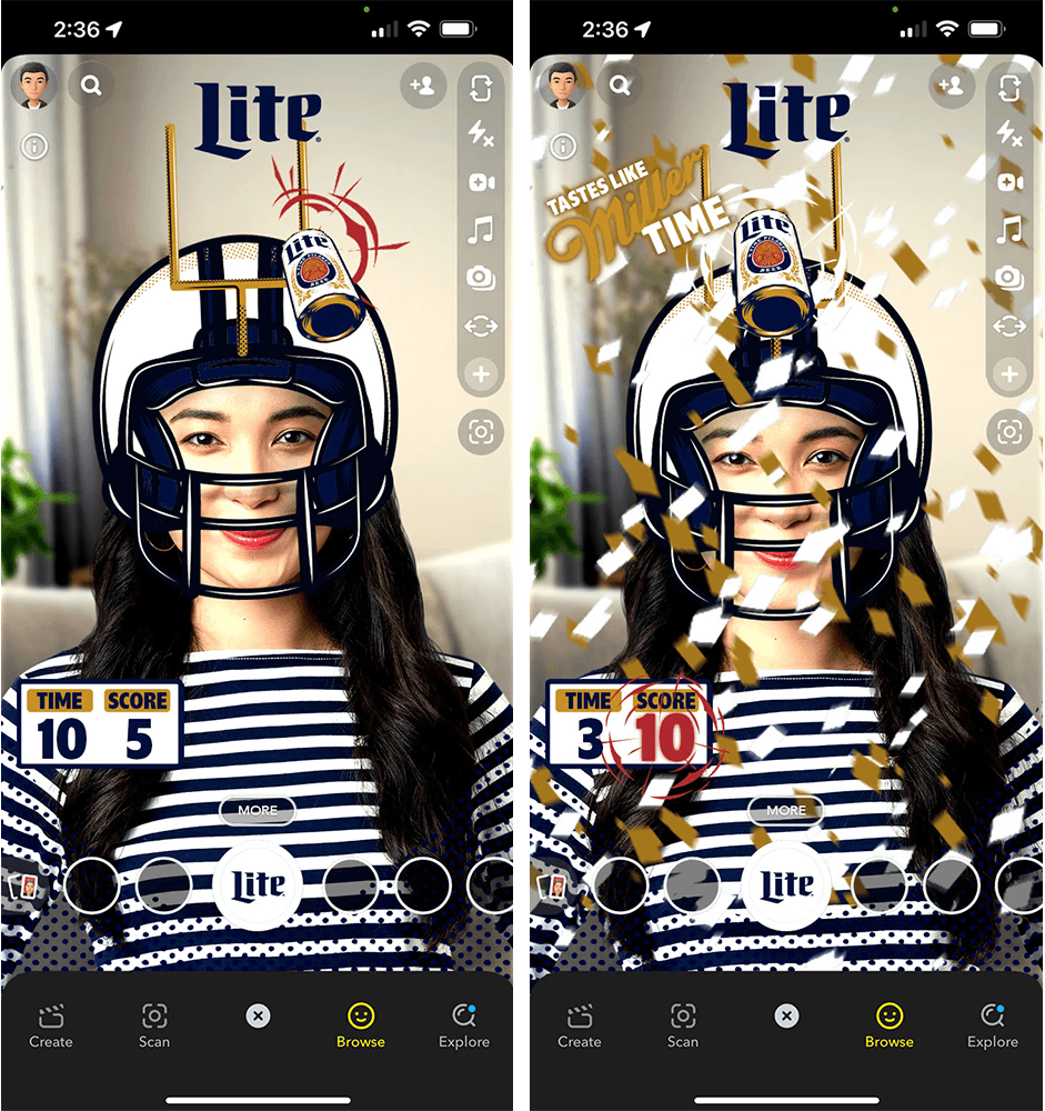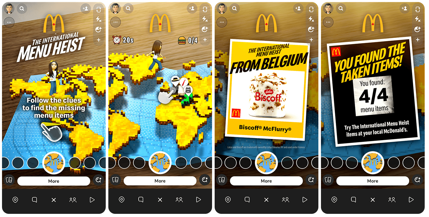 Designed and prototyped AR experiences using visual storyboards to help clients and development teams clearly envision the user journey and interaction flow. Most projects were deployed as Snapchat lenses, with select experiences created for interactive event ‘mirror’ installations.